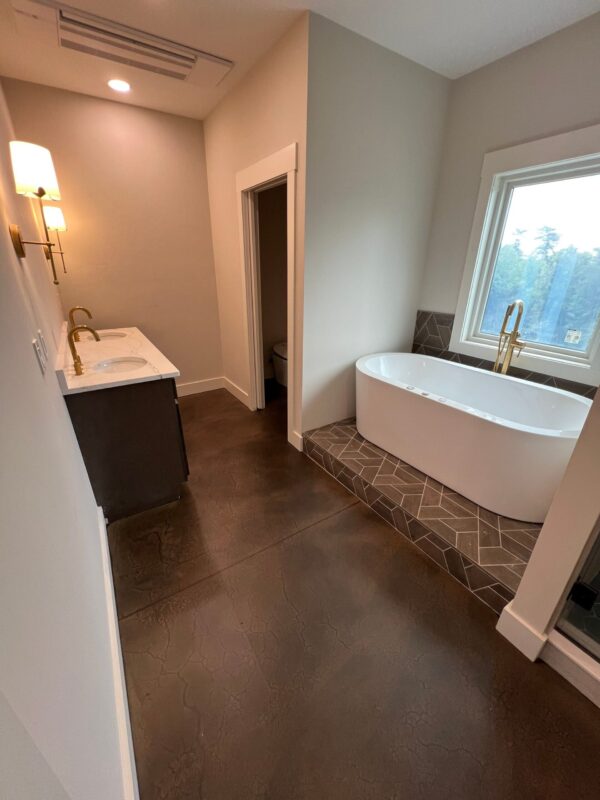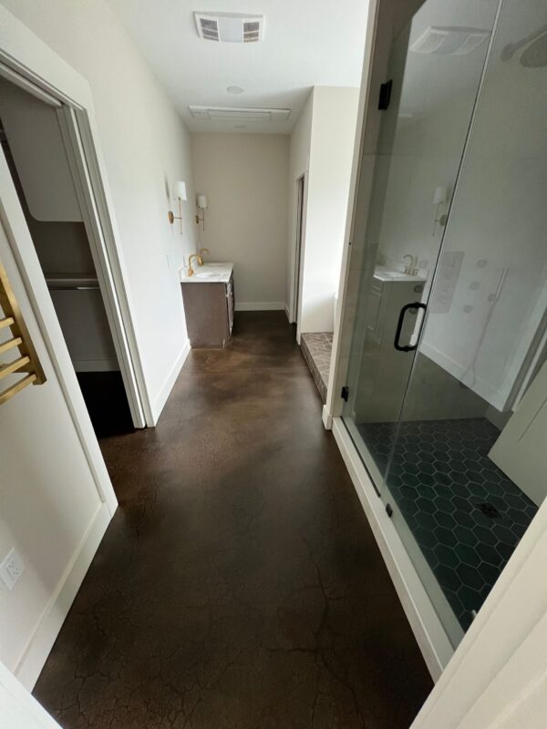 Epoxy flooring—resinous or polymer flooring—is made of resin and hardener. We start by appropriately prepping the surface. Then, we place the epoxy over your concrete, wood, VCT, tile, or other standard floorings. A chemical reaction creates a bond and forms a hard plastic.